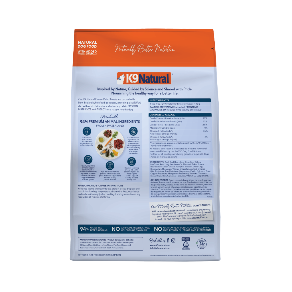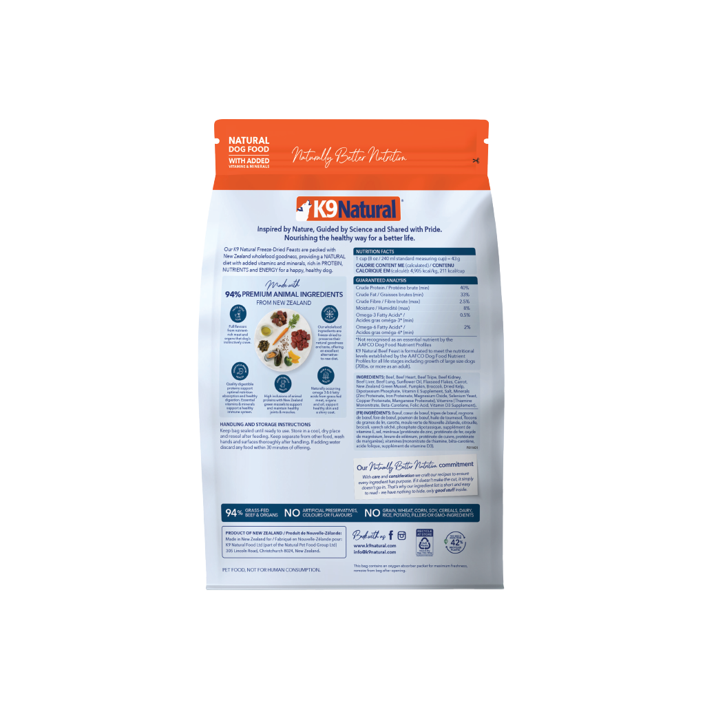 K9 Natural Freeze-Dried Beef Feast for Dogs – 142g / 500g / 1.8kg / 3.6kg
