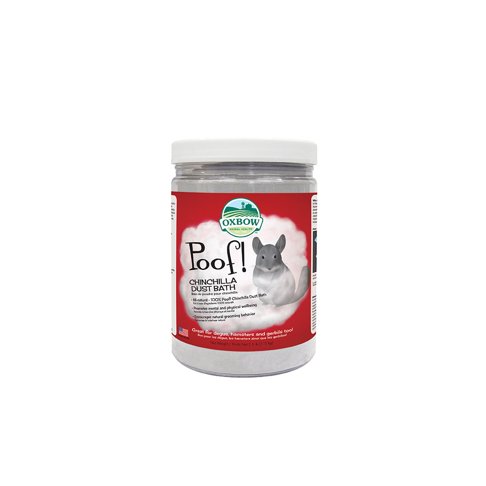 Support your chinchilla’s natural grooming instincts with Oxbow Poof! Chinchilla Dust Bath. Made from 100% natural volcanic ash, this fine, soft dust provides the ideal texture for effective cleaning, helping to remove oils, dirt, and moisture from their dense fur—keeping your chinchilla fresh, clean, and comfortable. A clean chinchilla is a happy chinchilla!