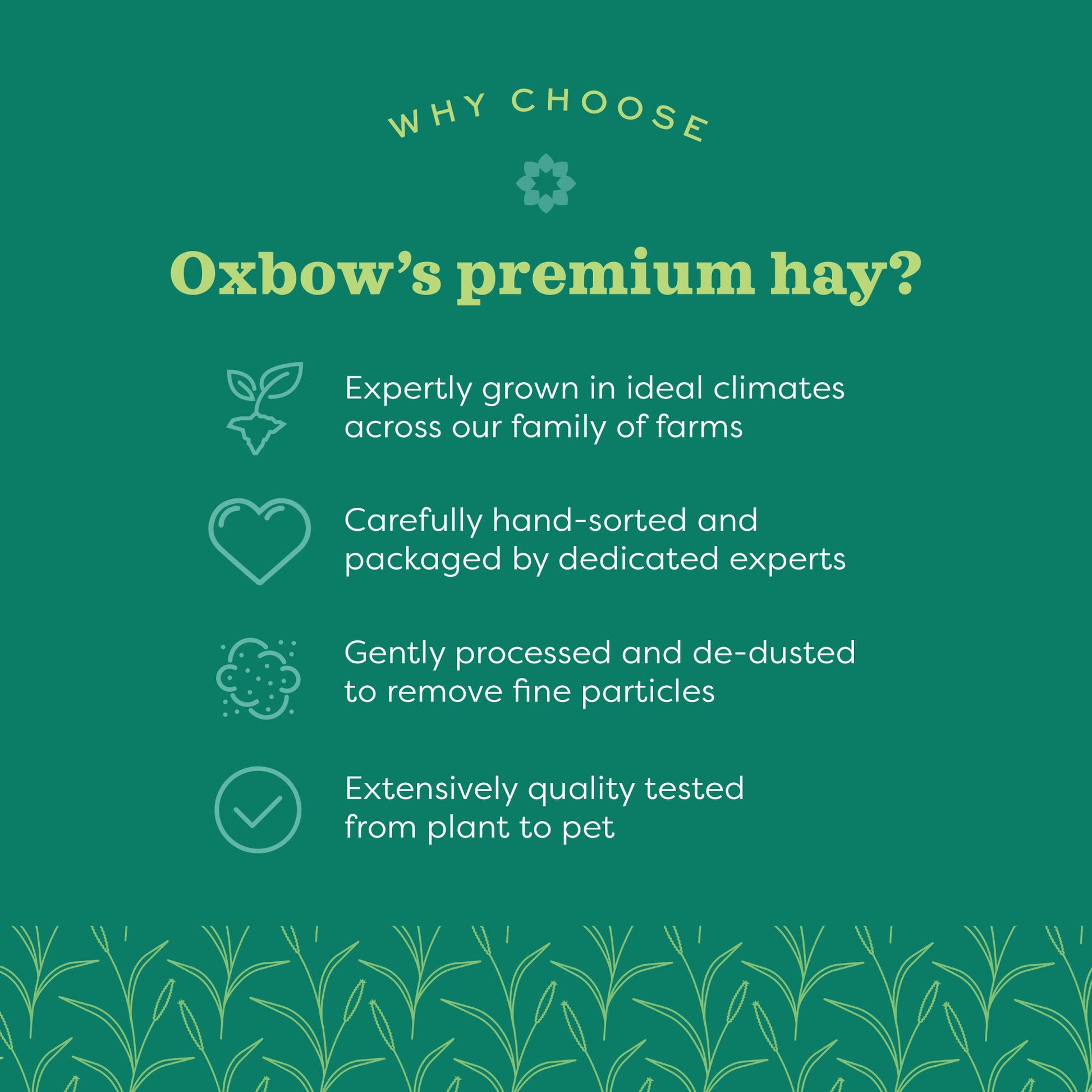 Oxbow's Prime Cut line is carefully curated from their own family of farms. Each batch is harvested at peak nutritional value, dried under natural sunlight, and sorted by hand for unparalleled softness and quality.